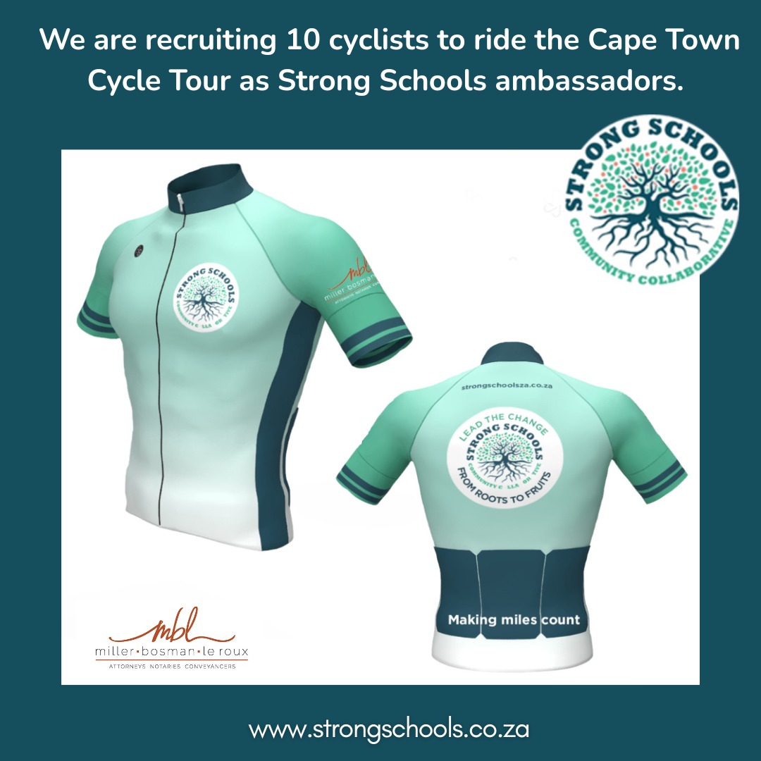 Contact us should you want to sign up and proudly wear the Strong Schools cycling shirt. admin@strongschoolsza.co.za.